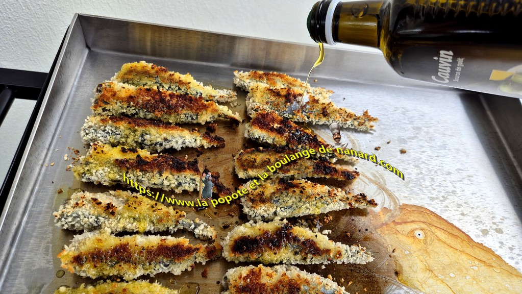 - Déposer les sardines puis les arroser d'un filet d'huile d'olive. Les laisser cuire 2 minutes.