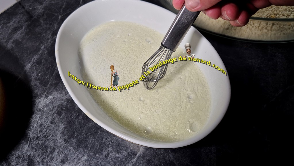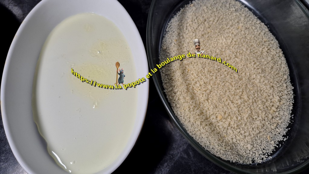 - Disposer dans deux autres plats les blancs d'œufs et la chapelure.