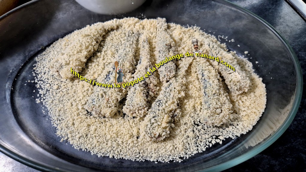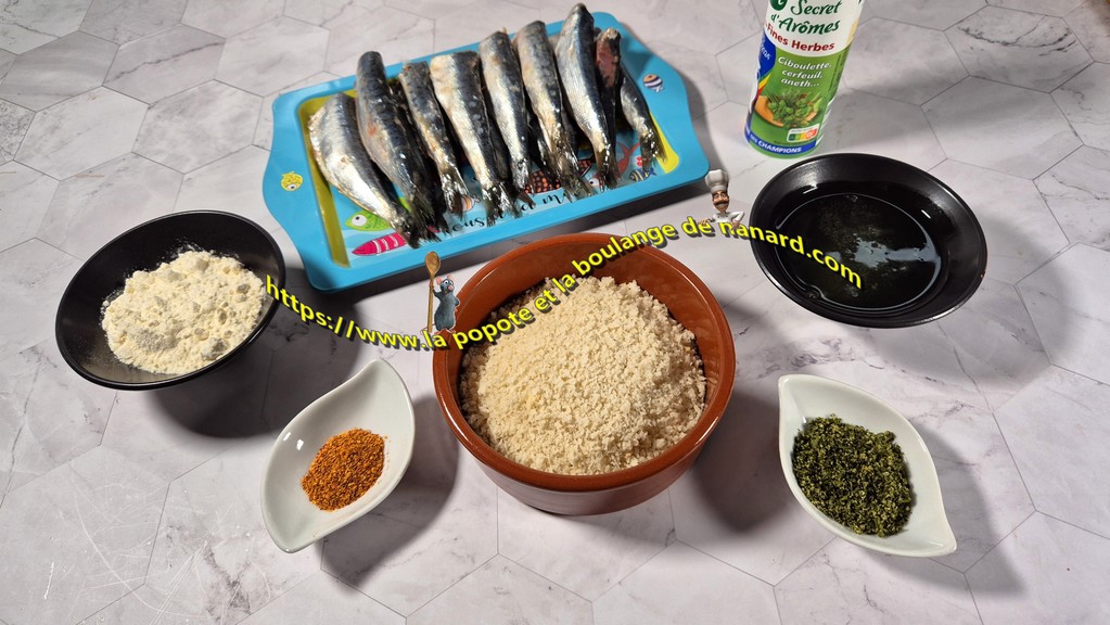 Pour les sardines, j'ai testé la préparation "secret d'arômes" à base de ciboulette, de cerfeuil et d'aneth. Je l'ai mélangé à la farine de ma panure. Cette petite poudre aromatique, si elle est savamment dosée, vient taquiner les pailles à merveille. Éviter un surdosage.