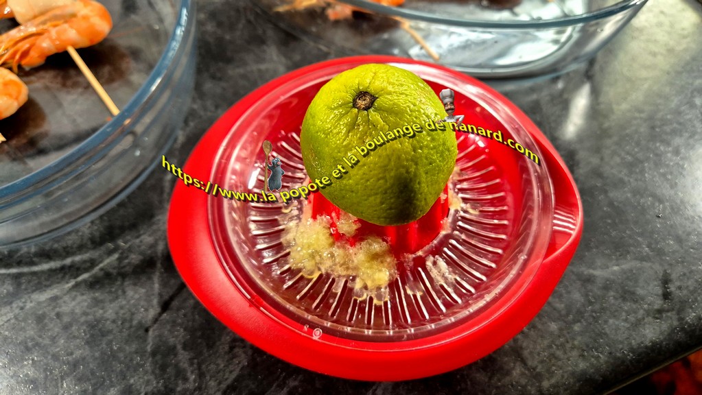 - Laver puis essuyer le citron vert. En presser le jus d'une moitié.