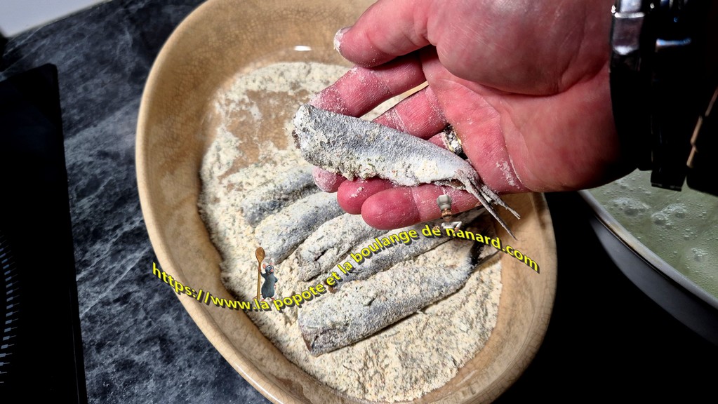 - Passer les sardines dans la farine puis secouer entre les doigts pour en enlever l'excédent.