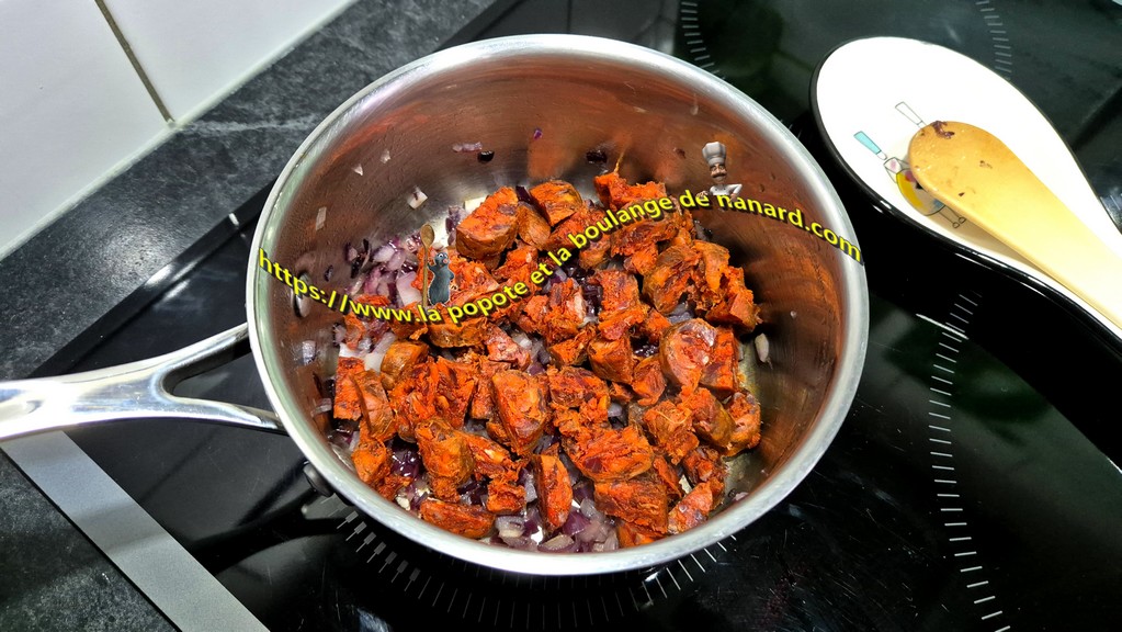 - Ajouter le chorizo puis le faire revenir 2 minutes.