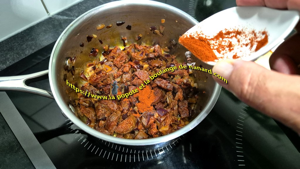 - Ajouter le paprika fumé, la gousse d'ail, puis faire revenir l'ensemble 3 minutes à feu moyen en remuant de temps en temps.