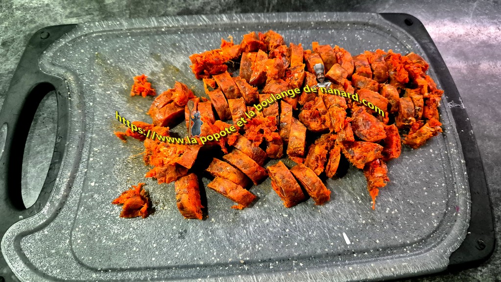 - 130 gr de chorizo (fort ou doux selon les goûts)