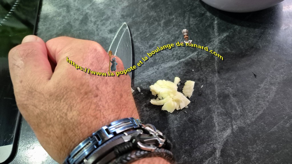 - Éplucher la gousse d'ail puis l'écraser avec la lame d'un couteau large.