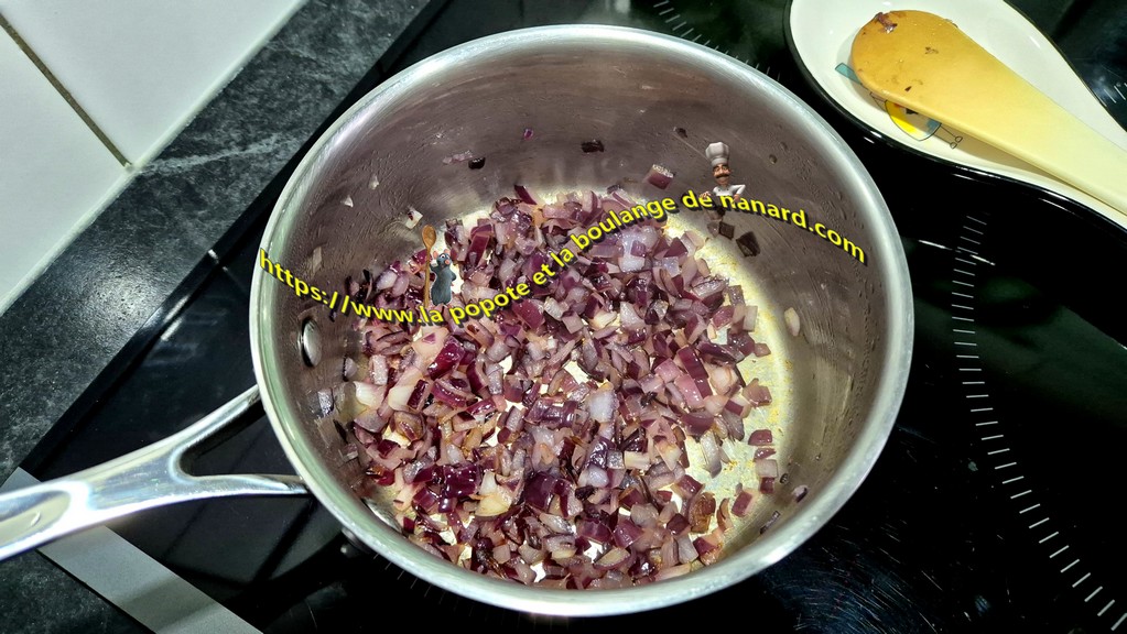 - Faire suer l'oignon dans l'huile chaude pendant 4 minutes en remuant de temps en temps.