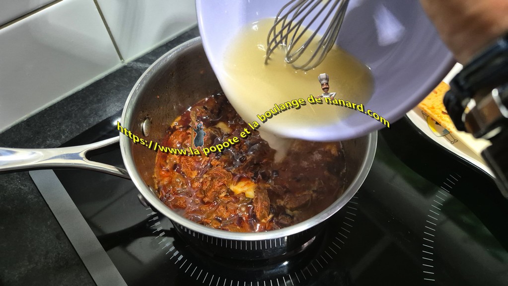 - Délayer le fumet de poisson dans 10 cl d'eau tiède puis l'ajouter à la préparation.